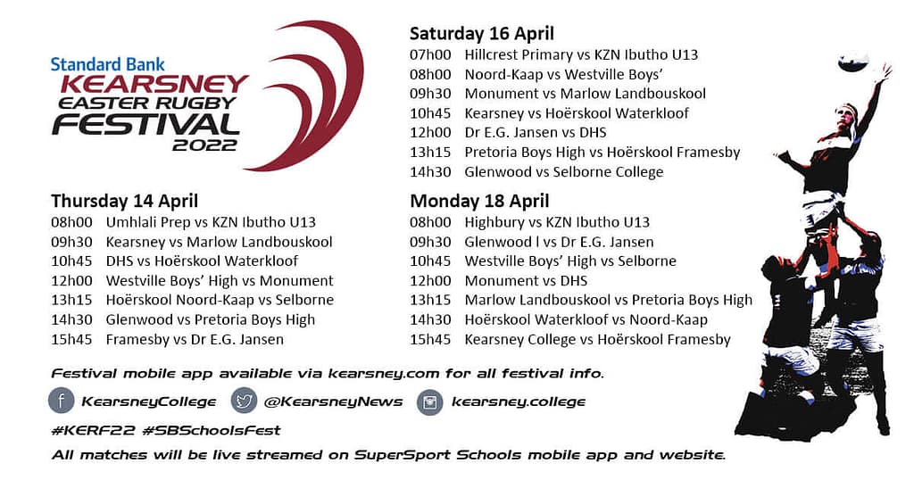 Kearsney College is set to once again be welcoming 12 top South African rugby schools to the Kearsney Easter Rugby Festival in from 14 April.